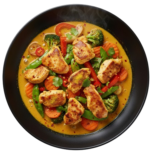 Mit zartem Hähnchenfleisch, Gemüse und pikanter Currysauce