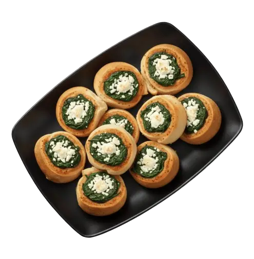 / Pizzabrötchen gefüllt mit Hirtenkäse Knoblauch und Blattspinat